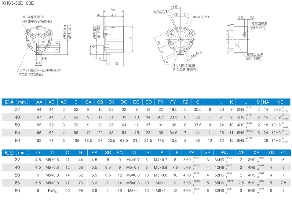 - XHSH系列平行開閉型氣動手指