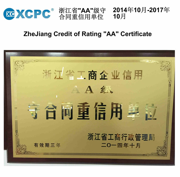 2014年10月,鑫潮氣動(XCPC Pneumatic) 被授予“AA"級守合同重信用單位